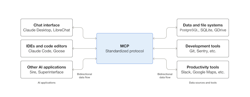 MCP (Model Context Protocol) is an open-source standard for connecting AI applications to external systems.
